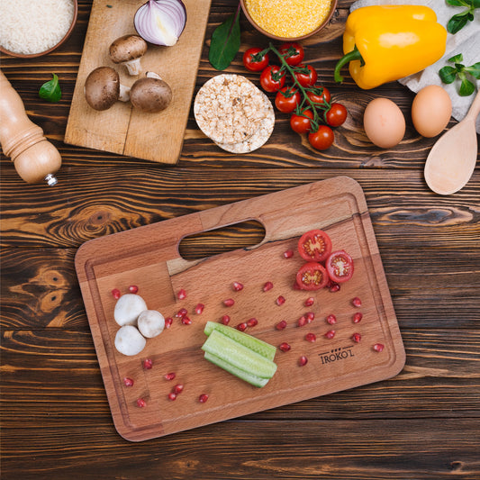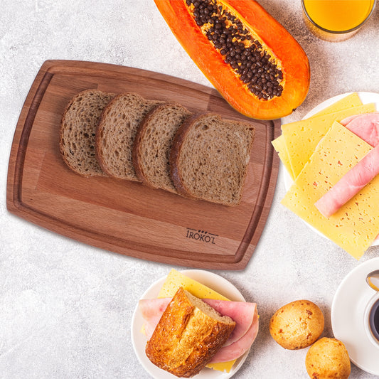 İROKO'L Premium Ahşap Kesme ve Sunum Tahtası 33x23cm Masif Kayın Mutfak Doğrama Bloğu