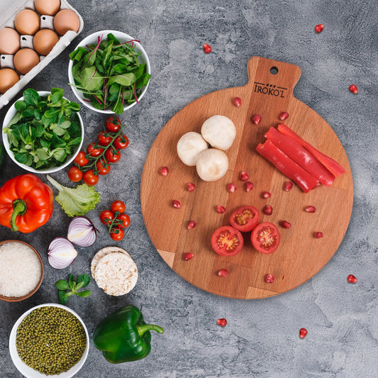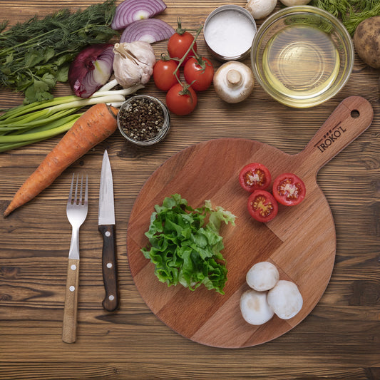 İROKO’L Kayın Ağacı Ahşap Sunum & Kesme Tahtası – 28,5x25 cm | Saplı, Doğal, Gıdaya Uygun