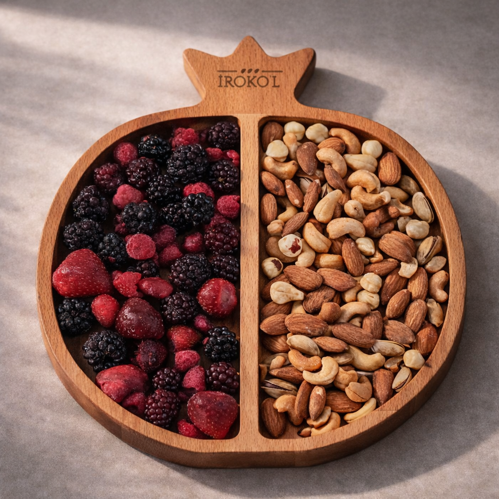 Misafir ağırlarken, kahve yanında ya da günlük kullanımda; kuruyemişten kuru meyveye, tatlıdan atıştırmalıklara kadar her sunumu düzenli ve estetik hale getirir. Doğal malzemesi sayesinde sofrada plastik veya yapay bir görüntü oluşturmaz, premium bir atmosfer sağlar.