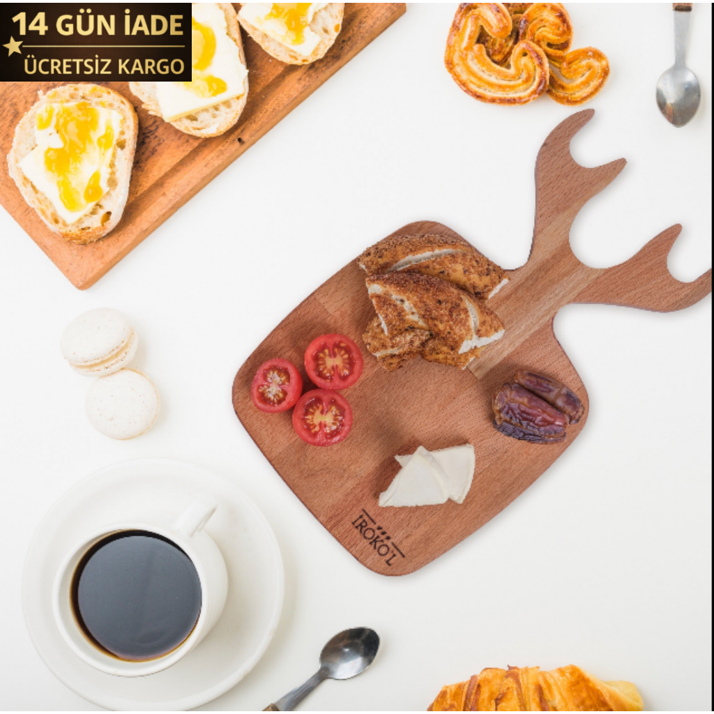 İROKO’L Geyik Saplı Kayın Ağacı Ahşap Sunum & Kesme Tahtası – 30x18 cm | Doğal, Gıdaya Uygun