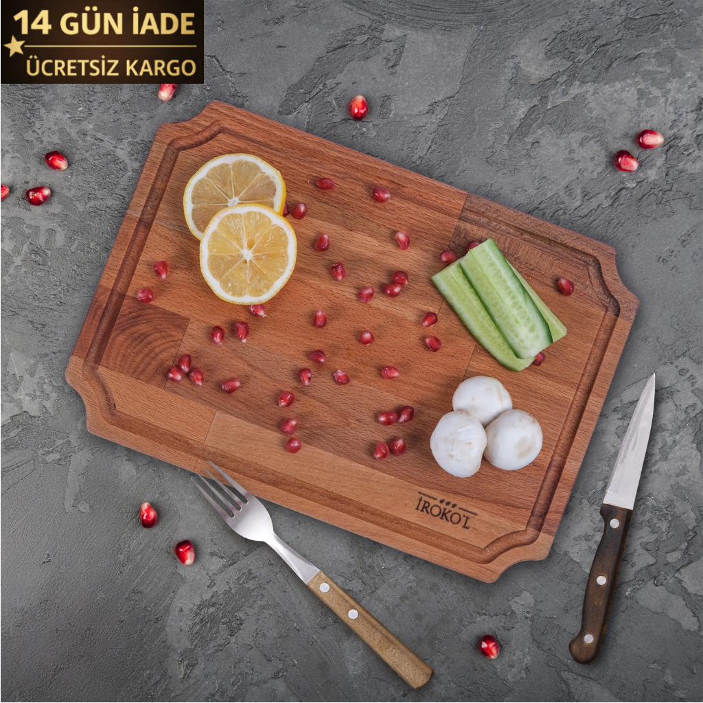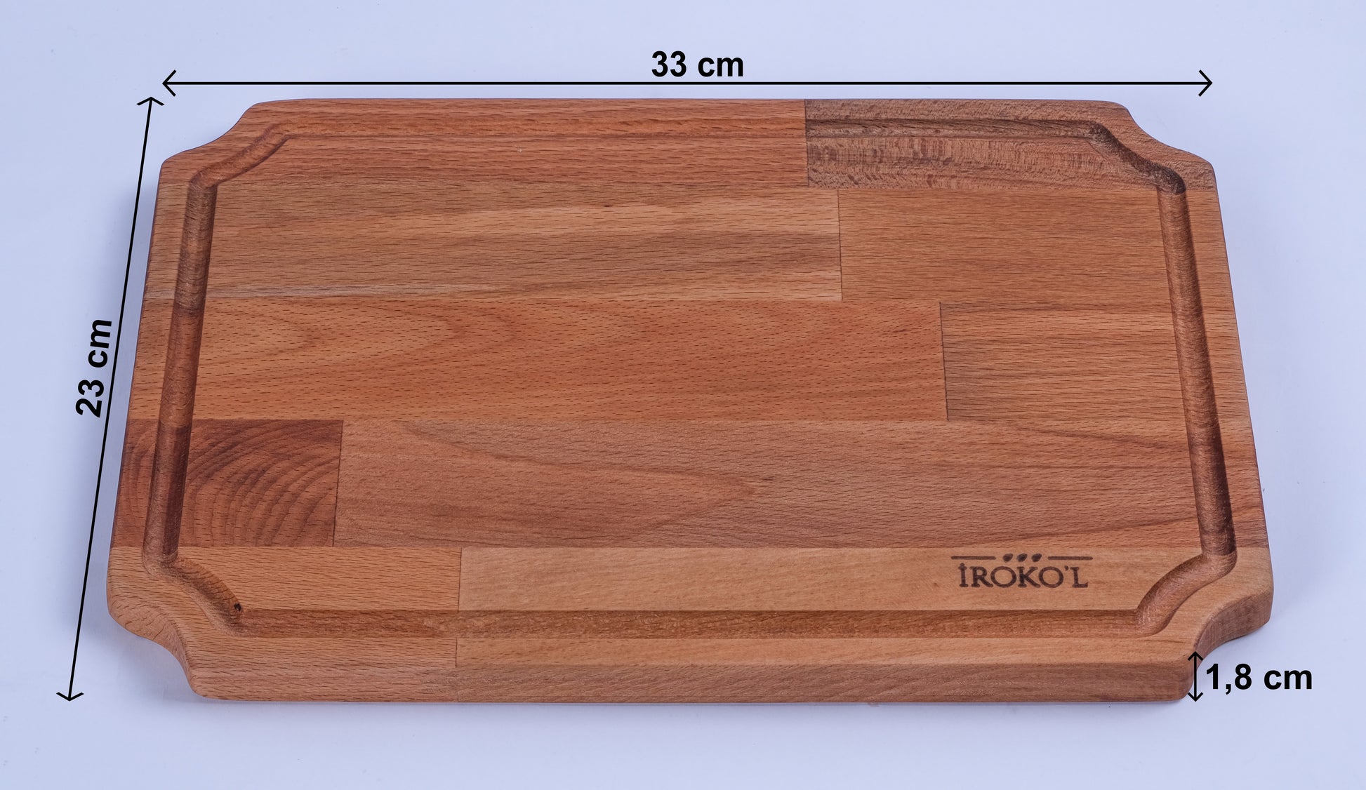 İROKO'L Doğal Ahşap Sunum ve Kesme Tahtası – Masif Kayın, 33x23 cm, Servis ve Mutfak Kullanımı İçin